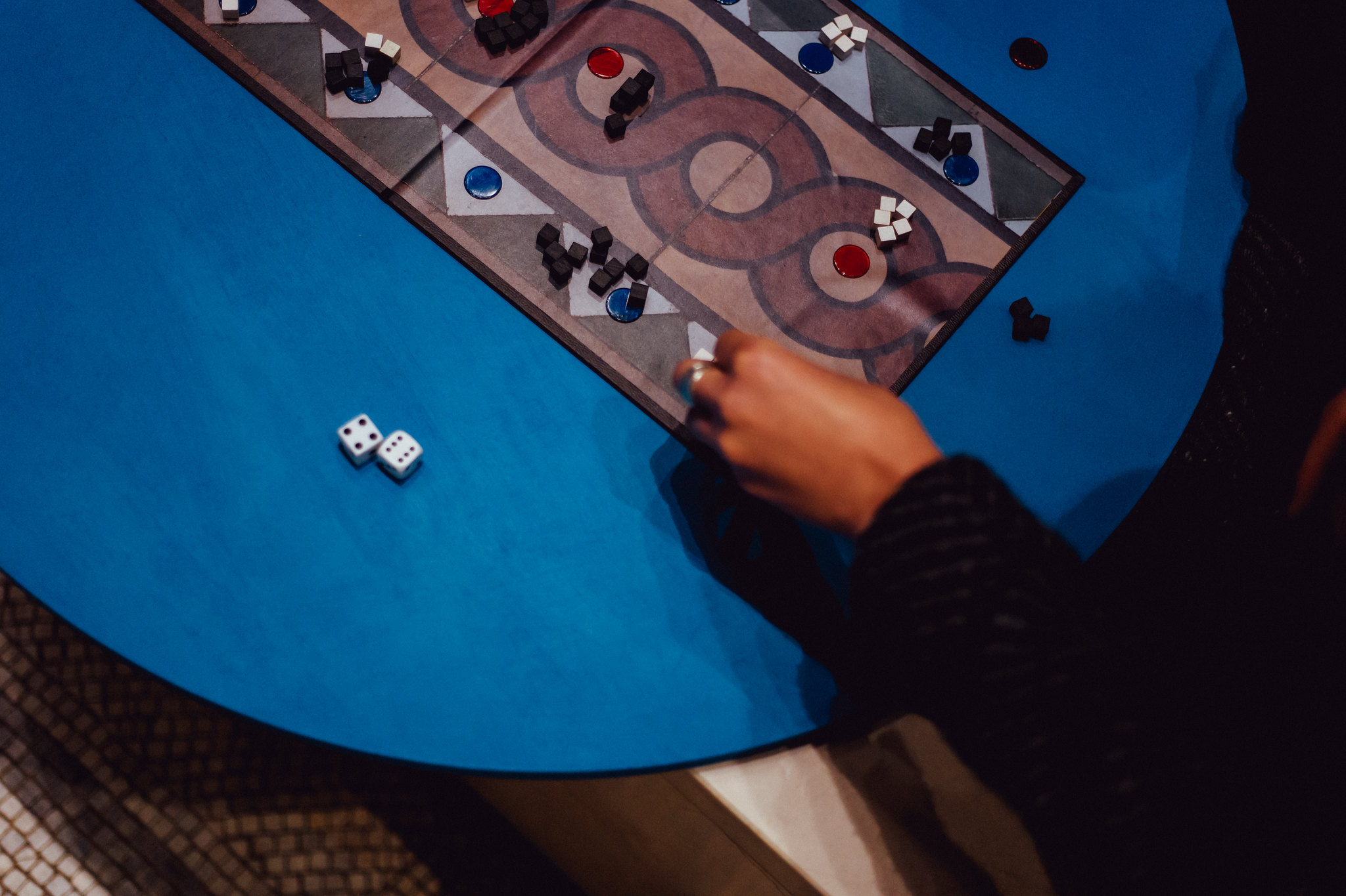 The games ranged from a territory-claiming strategy game to a dice-rolling attack game to a fast-talking word game, all played out on patterns from the V&A building itself, implicitly inviting players to attempt to spot the original source of their board design across the rest of the night.
